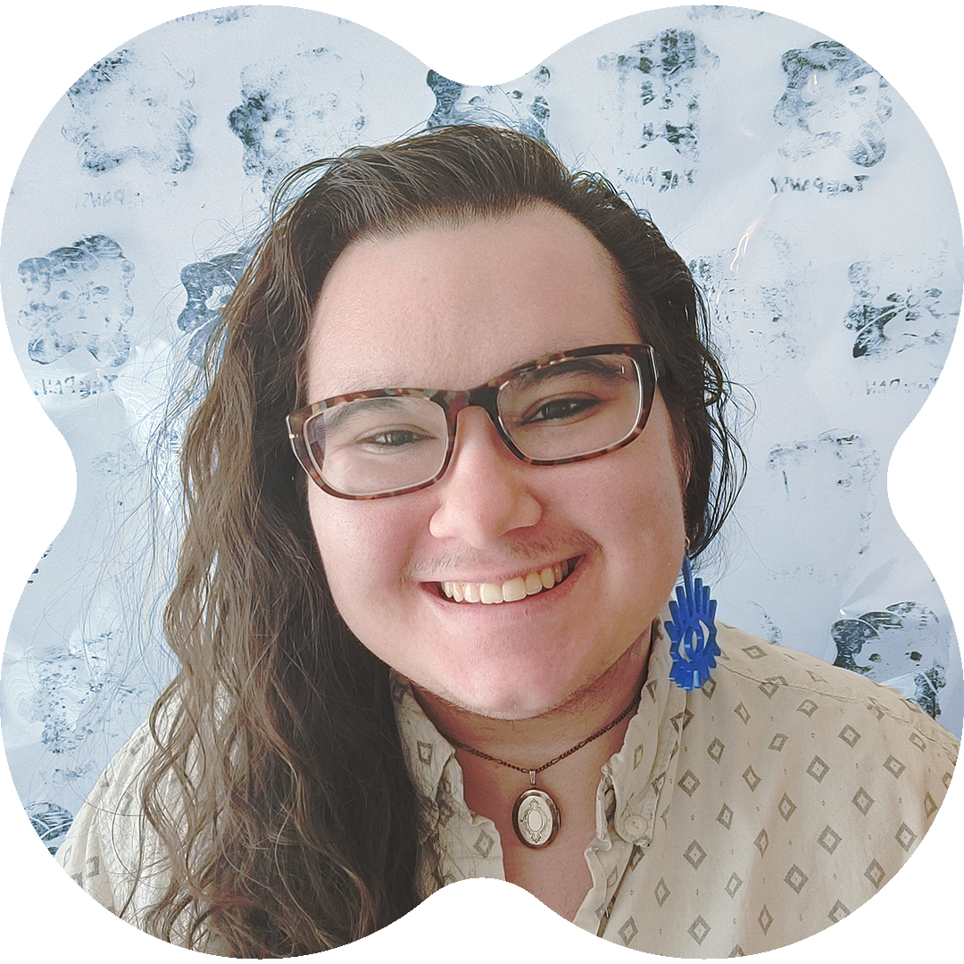 Cade Smith (they/he) is a practicing and teaching artist based on occupied Lenape and Merrick land (Long Island, NY). Their artwork digs into their experiences with queer identity, disability, mental health, and the liminal space between religious trauma and faith. Having completed their Master’s in Art & Design Education at Pratt Institute in 2021 (focusing on Community Arts and Museum Education), they are excited to continue using art to advocate for accessibility and provide space for students to develop and express their own identities and understandings of the world.